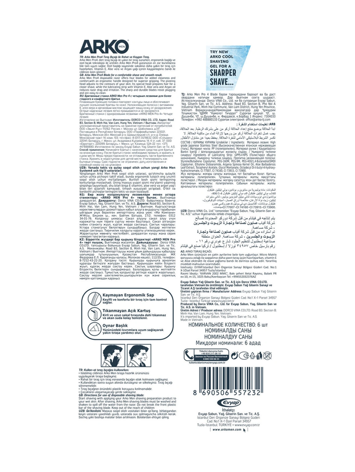 Arko Men Pro4 Dört Bıçaklı Tıraş Bıçağı 3 Adet