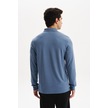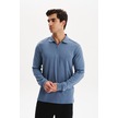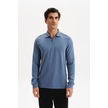Arma Erkek Basic Slim Fit Fermuarlı Polo Yaka Sweatshirt İnce Modal Pamuk Elastan Karışımlı Örme İnterlok Kumaş K30554989002 Mavi