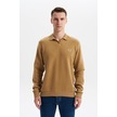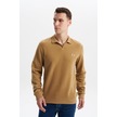 Arma Erkek Regular Fit Polo Yaka Kazak Karbon Fırçalı Selanik, %65 Pamuk %35 Polyester, Düğmesiz Basic K30554698602 Acı Kahverengi