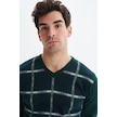 Arma Erkek Slim Fit Likralı Akrilik Kumaş V Yaka Kareli Kazak K0kro0860 Yeşil