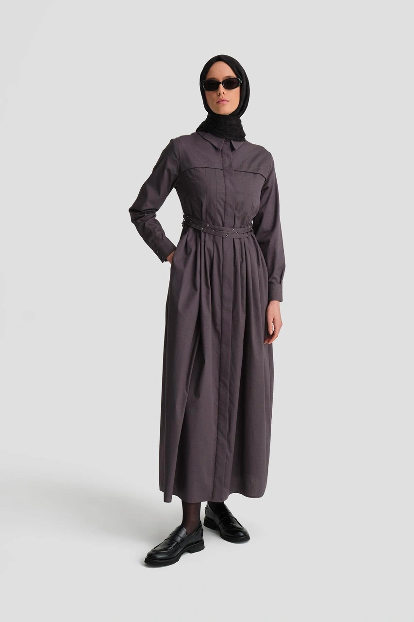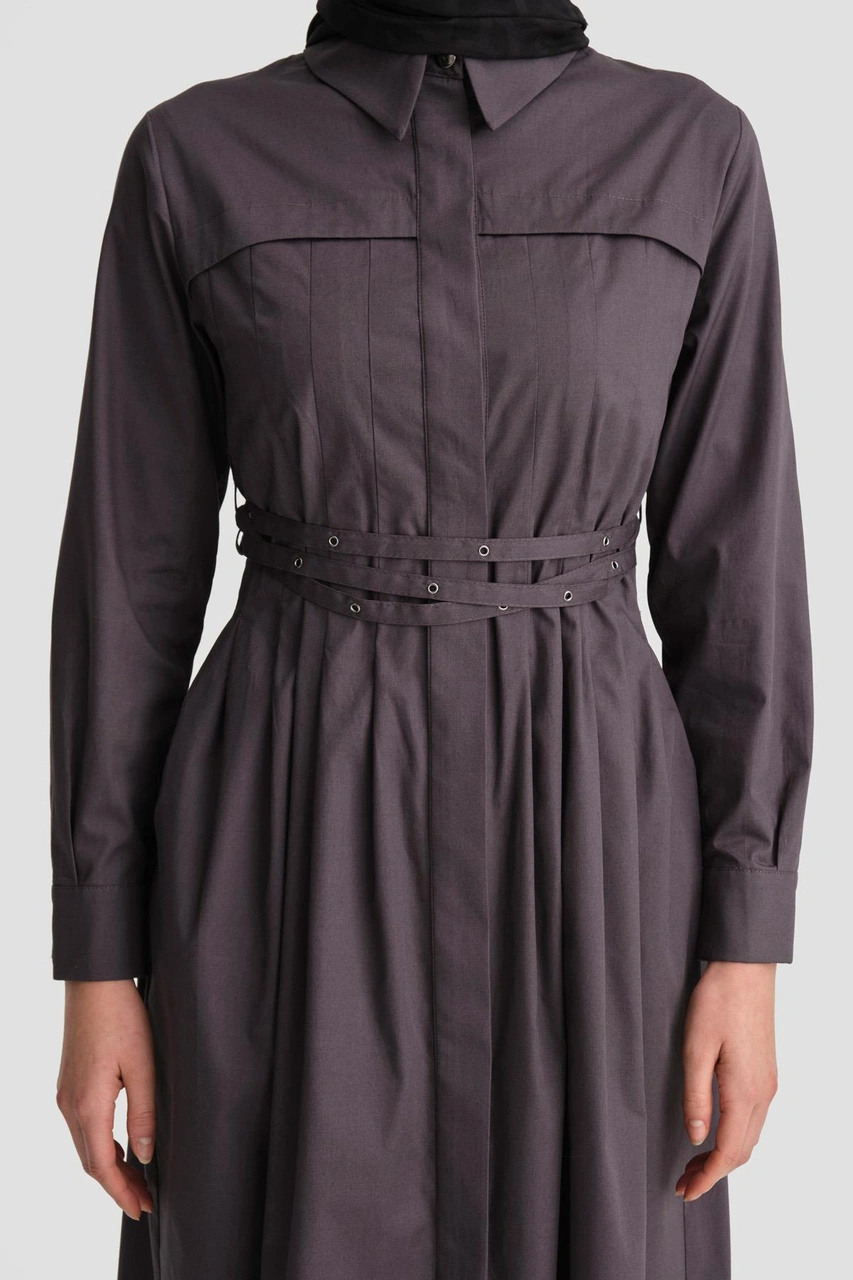 Armine Çapraz Kemerli Pamuk Elbise 24k9903 Antrasit Füme