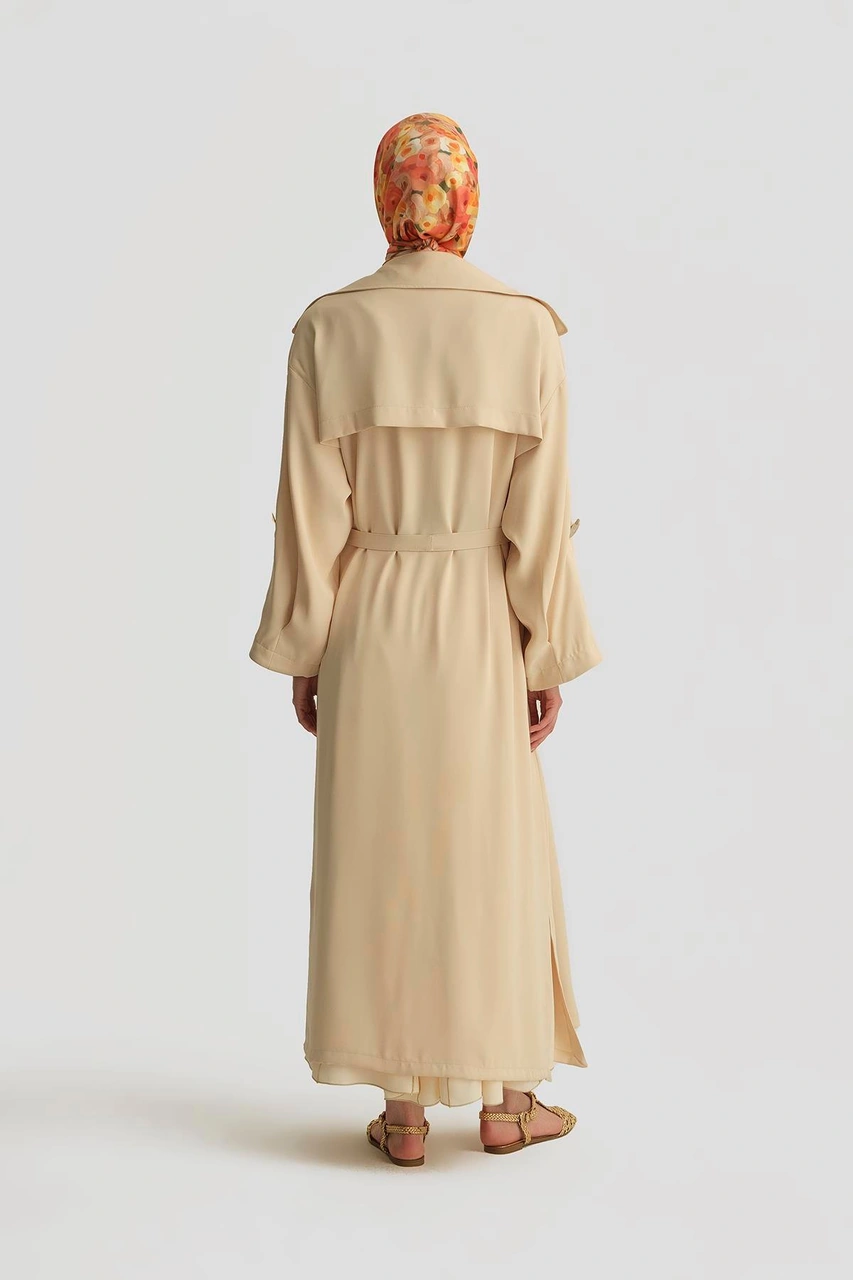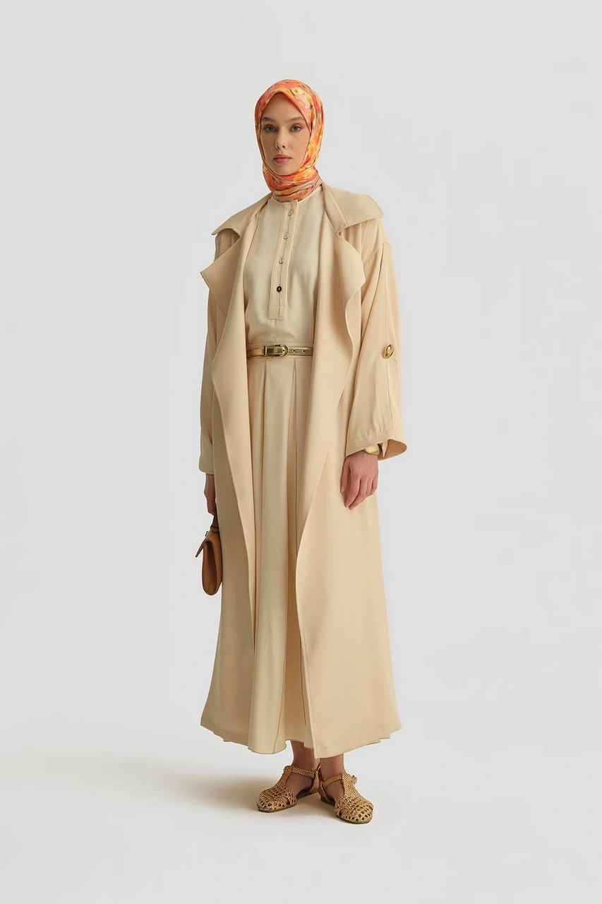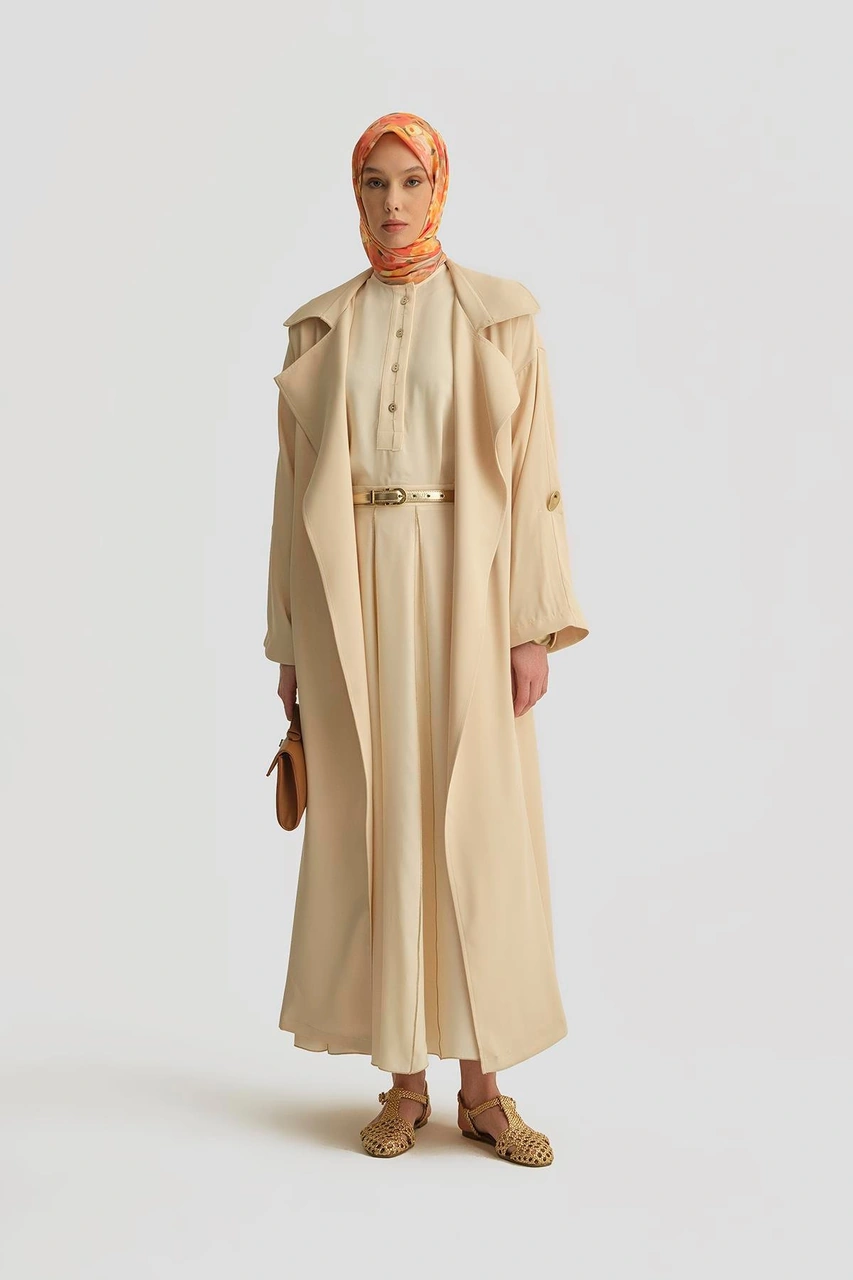 Medine İpeği Mevlana Kesim Cepli Kuşaklı Bol Ferace 4000-vizon Bej