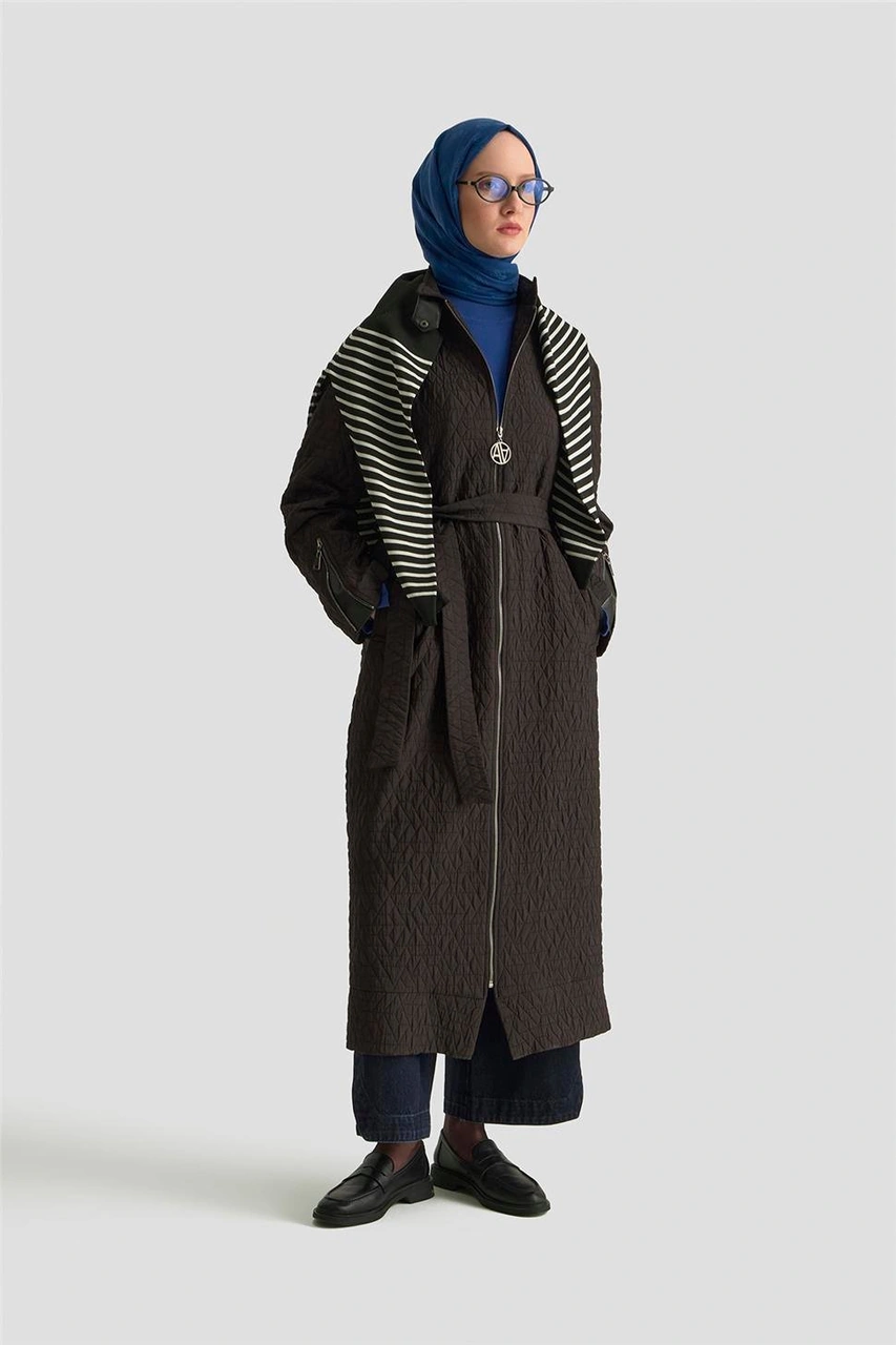 Medine İpeği Mevlana Kesim Cepli Kuşaklı Bol Ferace 4000-vizon Bej