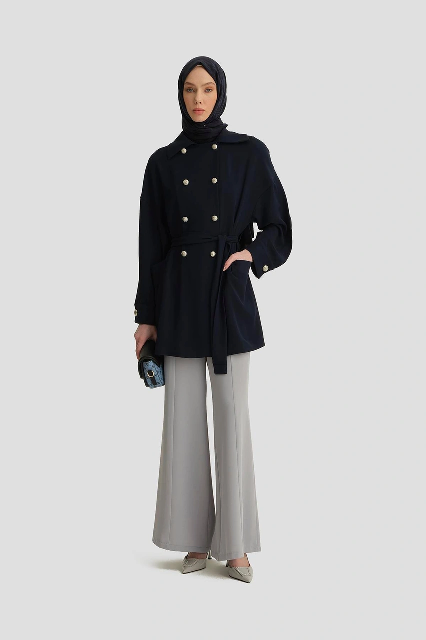 Armine Kol Yırtmaçlı Kruvaze Kap 25y7800 Lacivert Lacivert