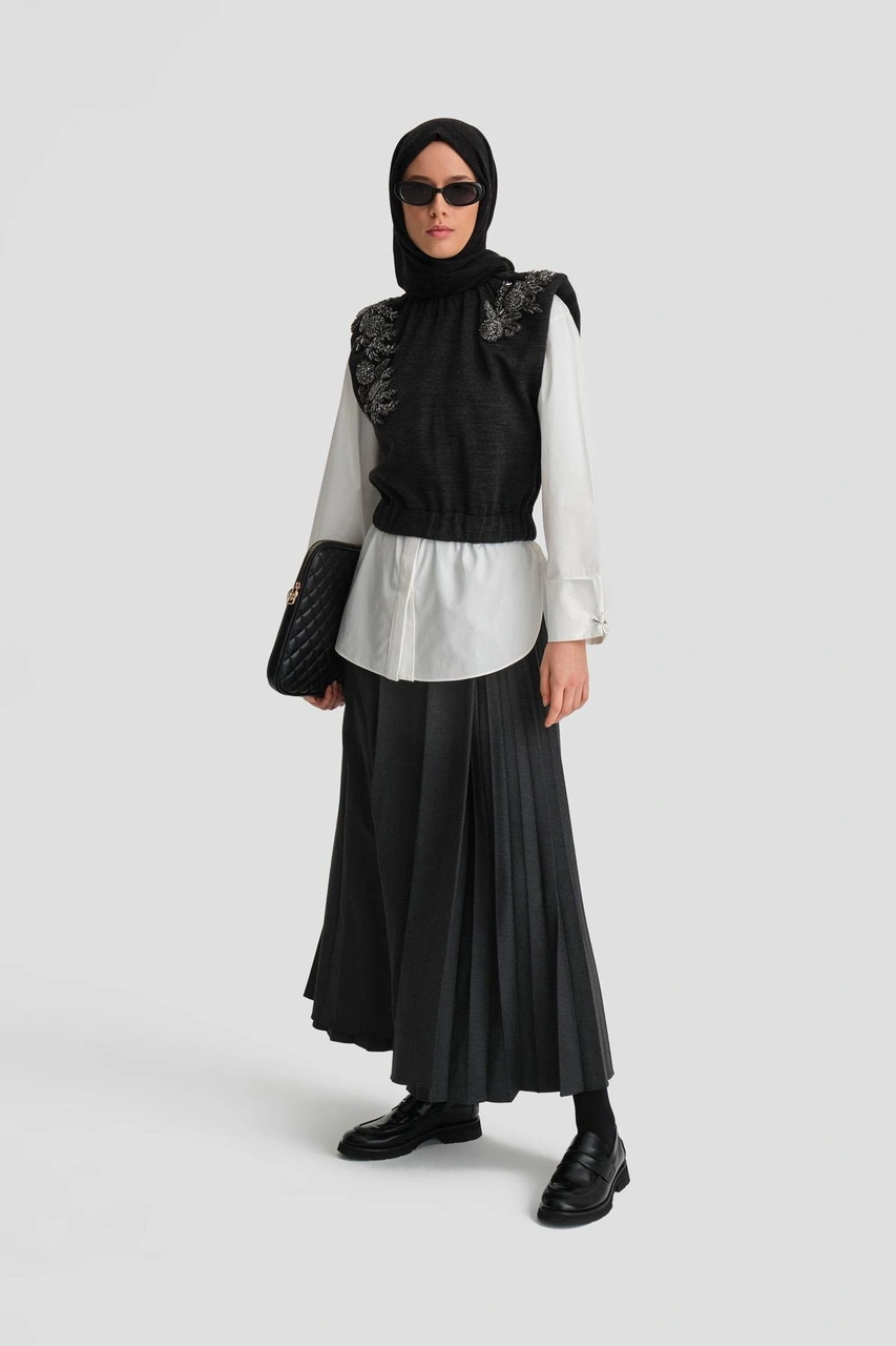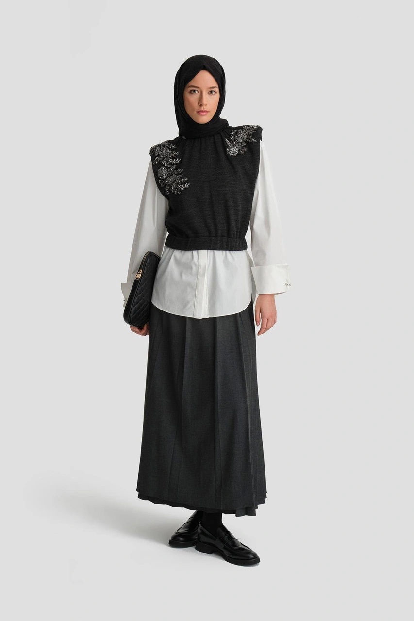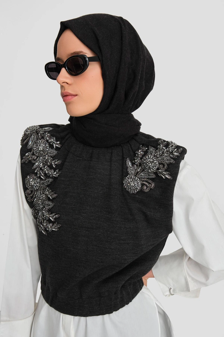 Armine Taş Aplikeli Süveter Yelek 25k4204 Antrasit Füme