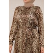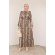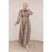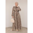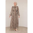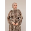 Armine Trend Leopar Desenli Beli Kemerli Elbise Kahverengi 24kt904 Kahverengi
