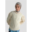 Armine Yakası İnci Detaylı Kazak 25kd6008 Ekru Ekru