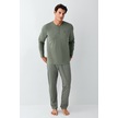 Arnetta 3013 Pamuk Uzun Kol Erkek Pijama Takımı V2 Yeşil