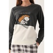 Arnetta Fa Fredo Koyu Gri Kadın Uzun Kol Pijama Takım