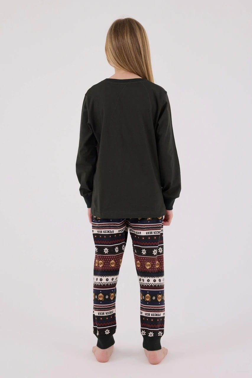 Arnetta Kız Çocuk Garson Aile Bear My Little Friend %100 Pamuklu 4 Mevsim Uzun Kollu Pijama Takım Füme