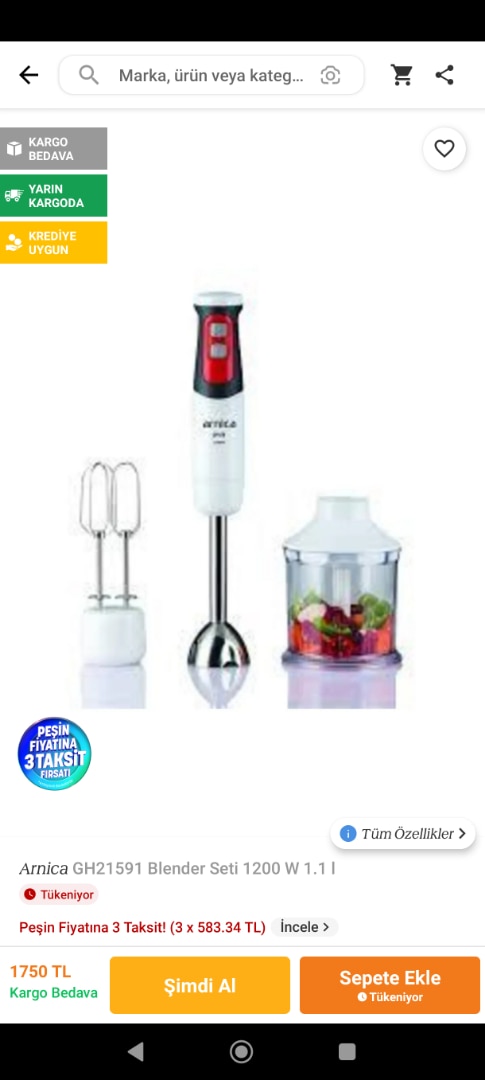 Arnica GH21591 1200 W Mikser & Blender Seti