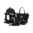 Aromee 5 Parça Set Kadın Laptop Sırt Çantası Tuval Okul Çantaları - Siyah