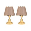 Art Deco Tarz Kristal Taş Süslü Metal Ayak Ve Gold Şeritli Kumbeji Başlık 2'li Abajur Seti İki Adet Kum Beji