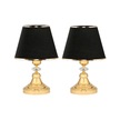 Art Deco Tarz Kristal Taş Süslü Metal Ayak Ve Gold Şeritli Siyah Başlık 2'li Abajur Seti İki Adet Siyah - Altın