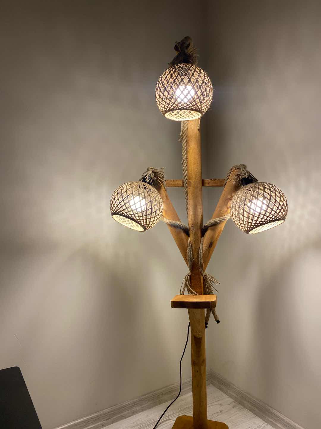 Ürün ıslak geldi ve üzeeindeki o dışarı doğru çıkan parça ambalajı açarken zımbaları söküldü kendim marangozda vida ile sabitlerttirdim ve ürünün rafı ve içine lamba takılan o yuvarlak karpuzlar görselde görüldüğü gibi estetik değil dümdüz odun çakarak raf yapmışlar görselde tanıtılan ürünün rafı ve ayaklığı boya rengi karpuzları felan çok daha estetik