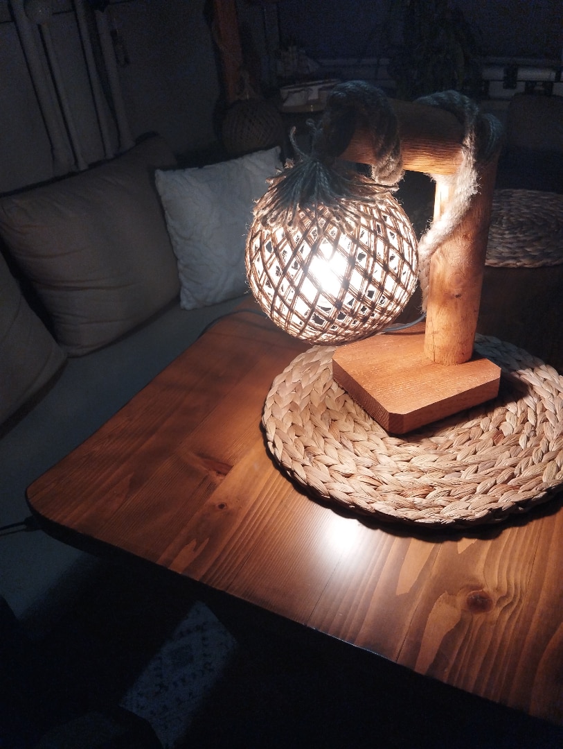 ampulün takilacagi kisim iceri dogru sallanıyor, sabitlemek için puskullerinden bagladim tepeden. güzel ahşap kokulu :) ( yolda üstünden tirnaktan az büyük bi parca kopmuş, koliden paecq düşünce ekstra dshil olmus sanip attim. yapistirsak olurdu da artik cok gecti. iade yeniden al uğraşmak istemedim