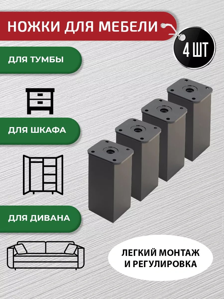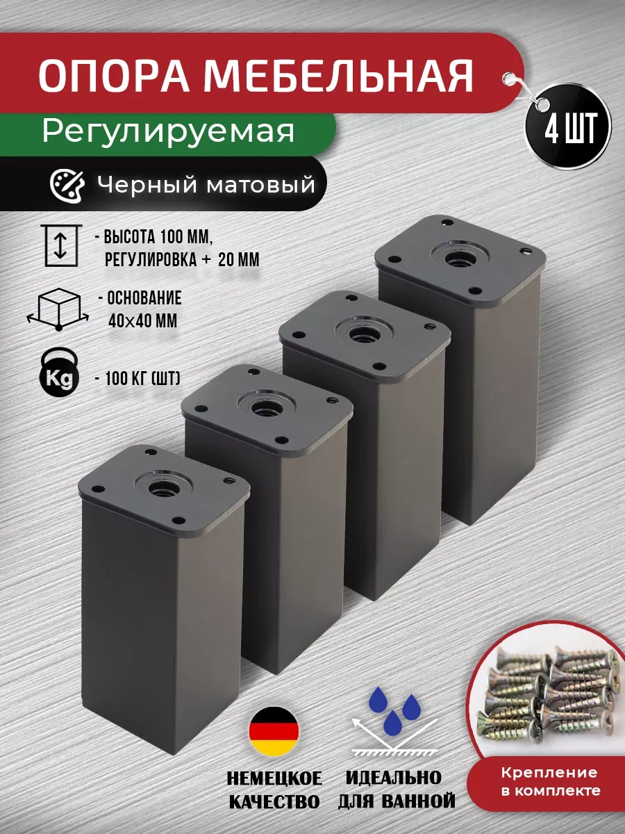 Artena Mobilya Ayarlılısı Siyah Ayaklar 100 Mm, 4 Adet, Montaj Tedavullisi İle 139817901 Siyah
