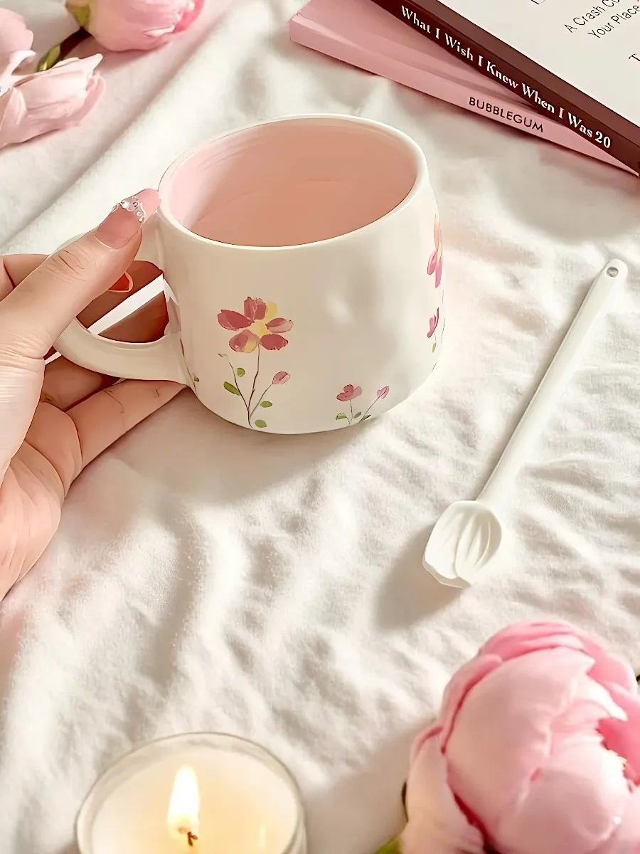 Porsima 2089-1 2li Borosilikat Isıya Ateşe Dayanıklı Cam Kulplu Çay Bardağı Kahve Bardak Kupa Pembe 400 Ml Şeffaf
