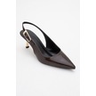Arty Kahverengi Rugan Sivri Burun Arkası Açık Kadın İnce Topuklu Ayakkabı Kahverengi