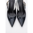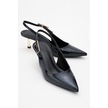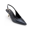 Arty Lacivert Rugan Tokalı Sivri Burun Arkası Açık Kadın İnce Topuklu Ayakkabı Lacivert