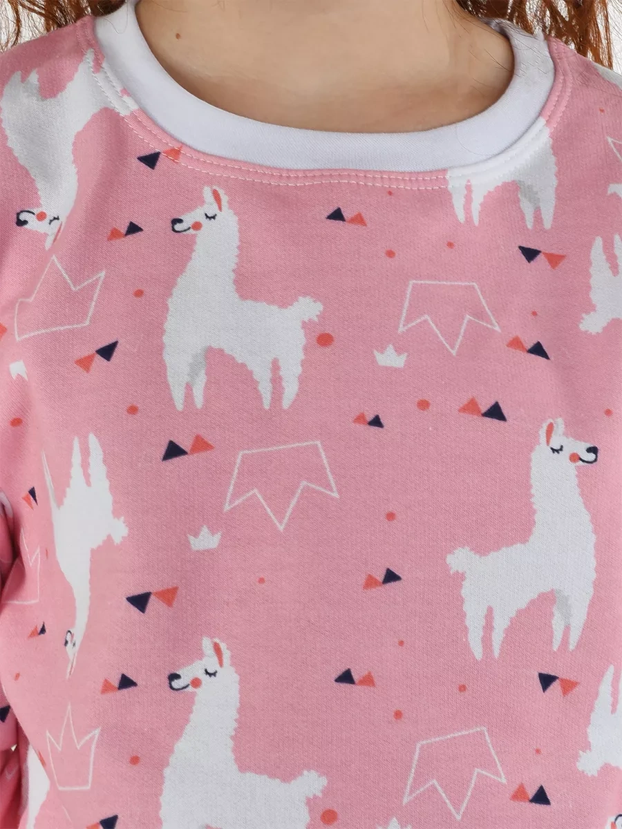Fyk Kids Kız Çocuk Baskılı Bel Detayı Lastikli Alt-üst Pijama Takımı Pembe