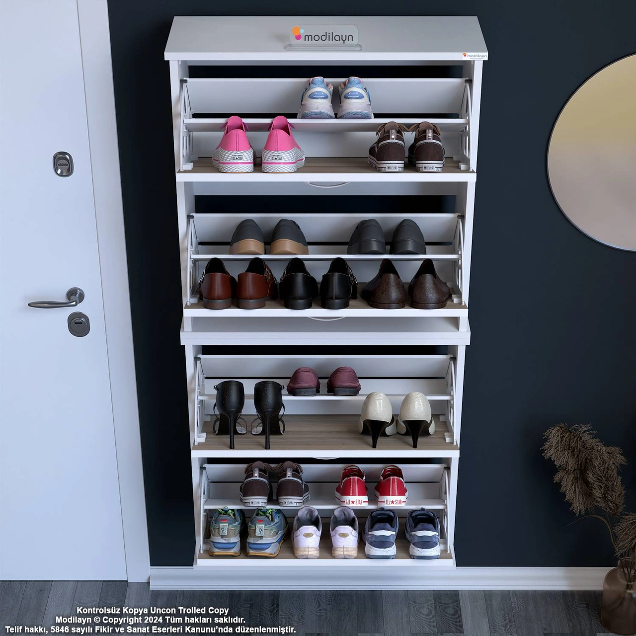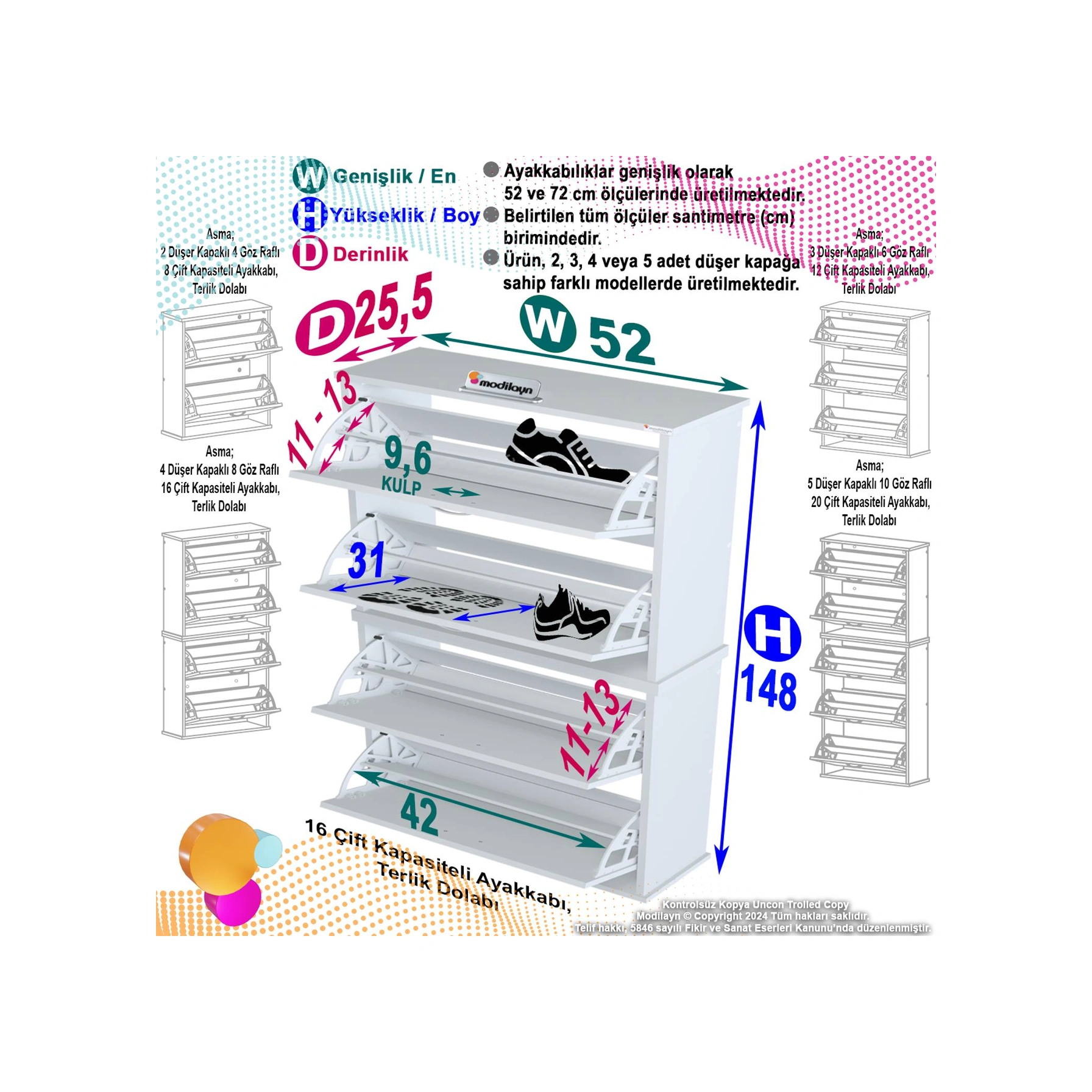 Asaf 2 Li Cordoba Renk Asma Ayakkabılık Antre 4 Düşer Kapak 8 Göz Bölme Ayakkabılık 52x148x 25,5 Cm Cordoba
