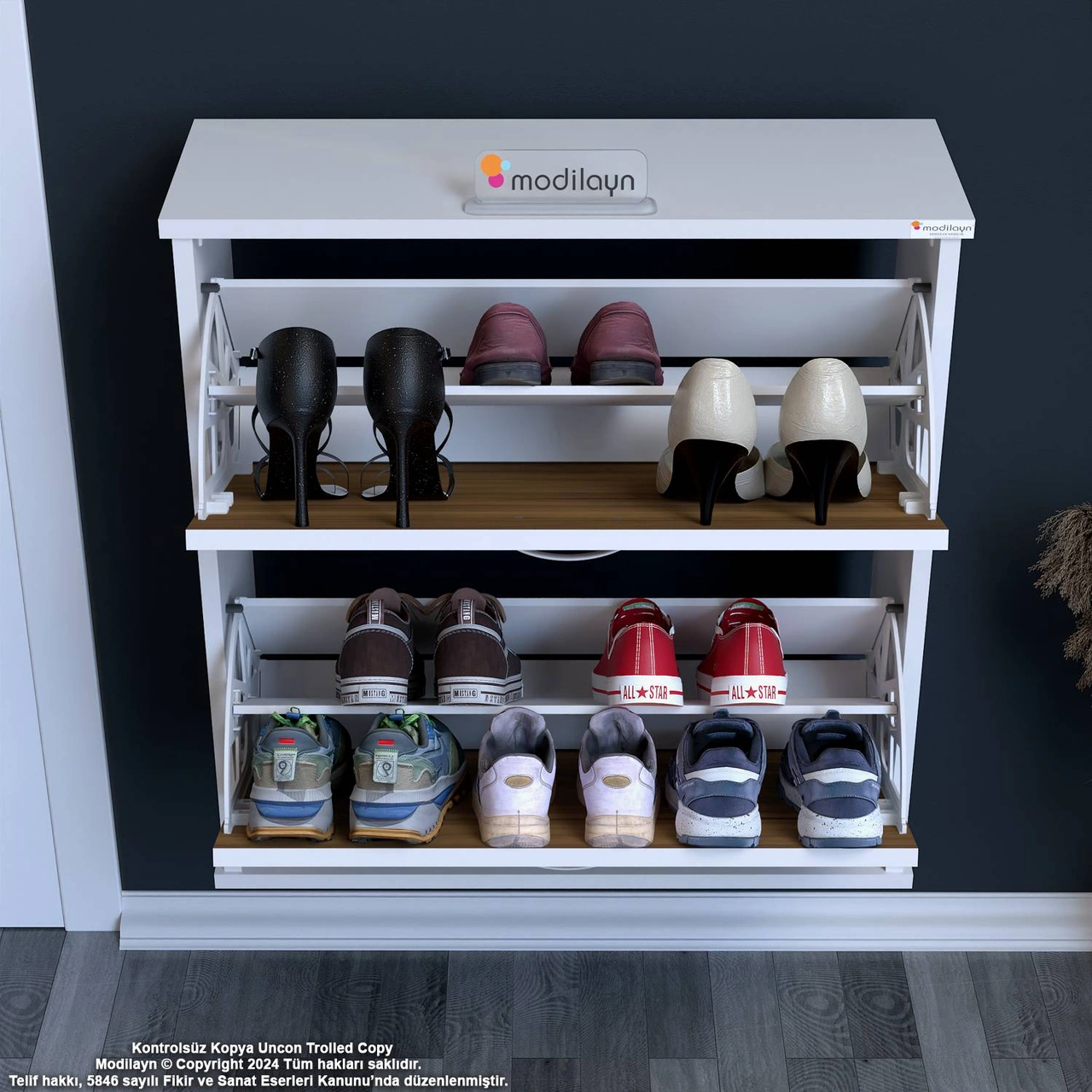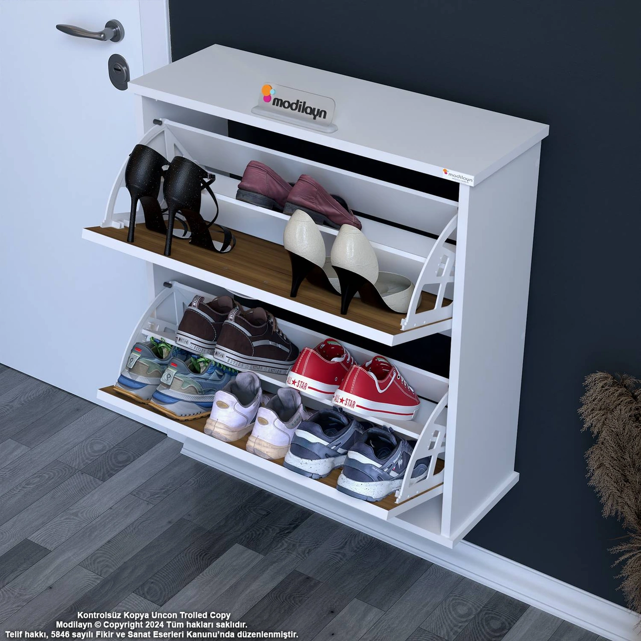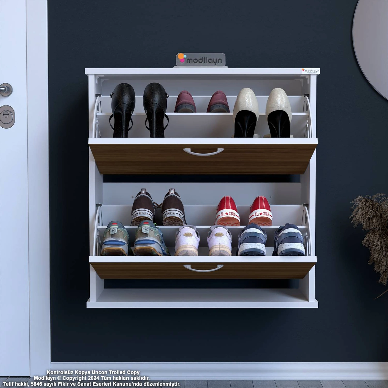 Asaf Ceviz Renk 72 Cm Asma Ayakkabılık Antre 2 Düşer Kapak 4 Göz Raf Ayakkabılık 72x74x25,5 Cm Ceviz