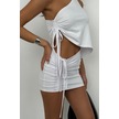 Asansörlü Tek Omuz Asimetrik Bluz Beyaz