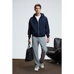 ASHBY Erkek Kapüşonlu Fermuarlı Cepli Kordonlu Regular Fit Lacivert Sweatshirt