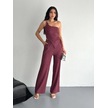 Asimetrik Crop Pantalon İkili Takım - Gül Kurusu Çok Renkli