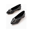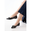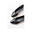 Aska Shoes İnf-133 Taşlı Tokalı Günlük Kadın Babet Siyah Rugan