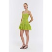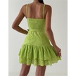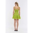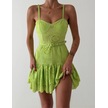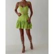 Askılı Dantel Güpür Kabartmalı Fırfırlı Sırtı Esnek Lastikli Mini Neon Fosfor Renk Yazlık Elbise Yeşil