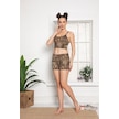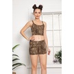 Askılı Leopar Desenli Göbek Üstü Şortlu Kadın Pijama Takımı 30144 Kahverengi