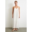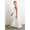 Eteği Volanlı Uzun Elbise Kırık Beyaz