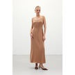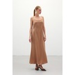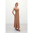 Askılı Uzun Saten Elbise - Camel-136330 Camel