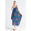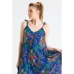 Askılı Vual Afrodit Midi Boy Elbise Saks 6192 - Kadın