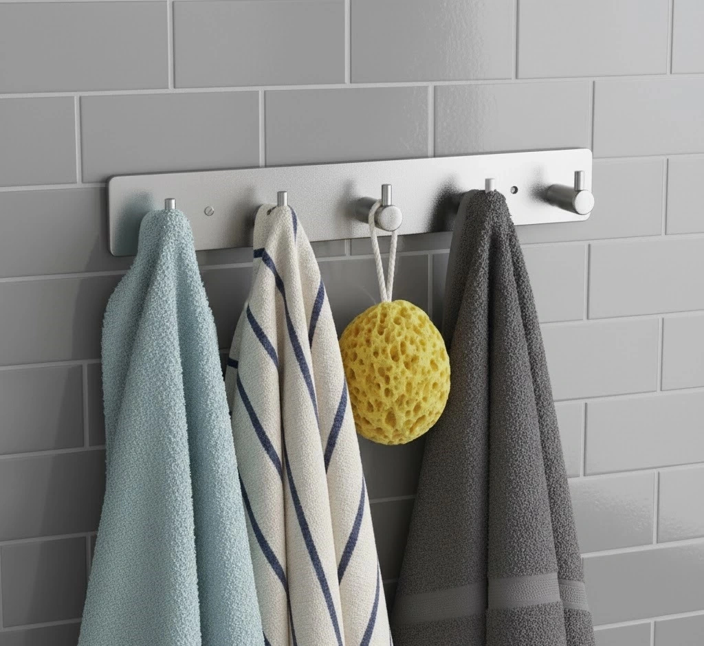 Askılık Yapışkanlı Dikdörtgen Çubuklu 5 Kancalı Krom Krom