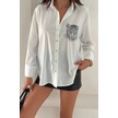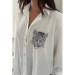 Aslan Desen Baskılı Taşlı Gömlek Gümüş Gümüş