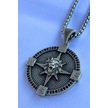 Aslanlı Pusula El İşçiliği Paslanmaz Çelik Zincir Erkek Kolye Gümüş