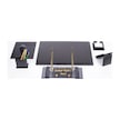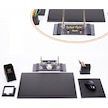 Çok şık bir görüntüsü var. isimlik cam kalınlığı ve boyutu gayet iyi. sümen, mause pedi, kalemlik, blok notluk ve telefon tutucu ile masanızı dolu ve şık göstermeye yeterli. Paketleme gayet iyiydi teşekkür ediyorum. İsimlik tutucu yerinde ve isim metni yapıştırılırken simetriye biraz daha özen gösterilebilir.