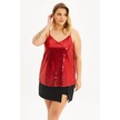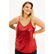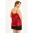 Astarlı İp Askılı Payetli Bluz-1683 Kırmızı