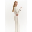 Eteği Volanlı Uzun Elbise Kırık Beyaz