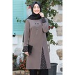 Tesettür İkili Takım Uzun Tunik Bol Paça Pantolon 4006-kahve Kahverengi