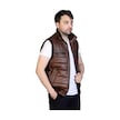 Asyaclub Max Hakiki Deri Erkek Taba Trikolu Şişme Yelek Kahverengi
