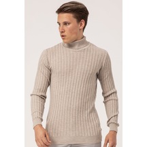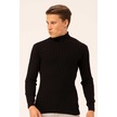 Ateş Triko Erkek Balıkçı Yaka Slim Fit Fitilli Triko Kazak 6091288 Siyah Siyah
