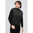 Ateş Triko Erkek Yarım Balıkçı Yaka Desenli Kazak 6091804 Siyah Siyah