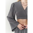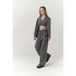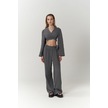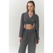Kadın İspanyol Paça Pantolon Uzun Kollu Parmak Geçirmeli Crop Takım Gri