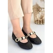 Siyah Süet T-strap Mary Jane Tasarım Babet Siyah Süet