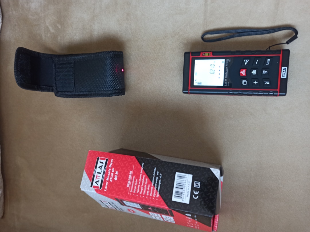 Ürün güzel. Gündüz güneş olduğu için 18 metreyi ölçtü.. Gece 72 metreyi ölçtü. Ölçüm yaparken sabit tutulması halinde sağlıklı sonuç veriyor. Hacim hesaplama özelliği bulunuyor. içinden pili ve saklama kılıfı çıktı. umarım uzun süreli kullanabiliriz.