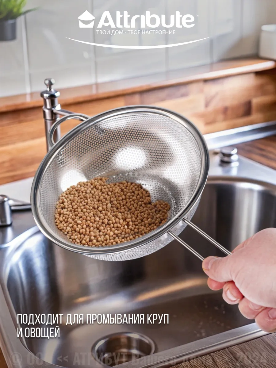 Attrıbute Makarna İçin Saplı Metal Süzgeç Steel Touch 28298050 Gri
